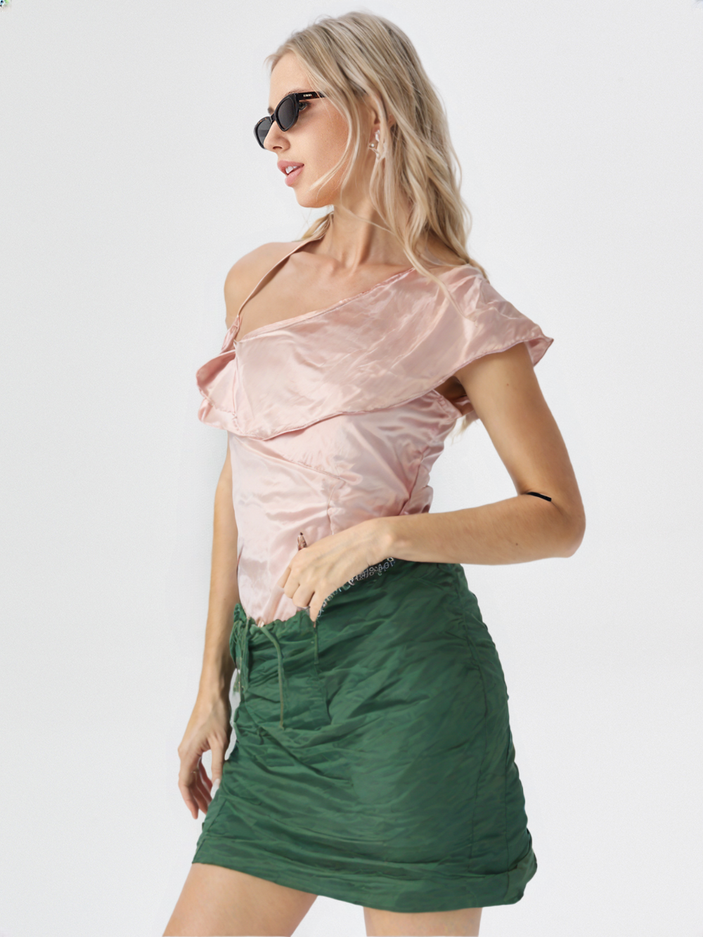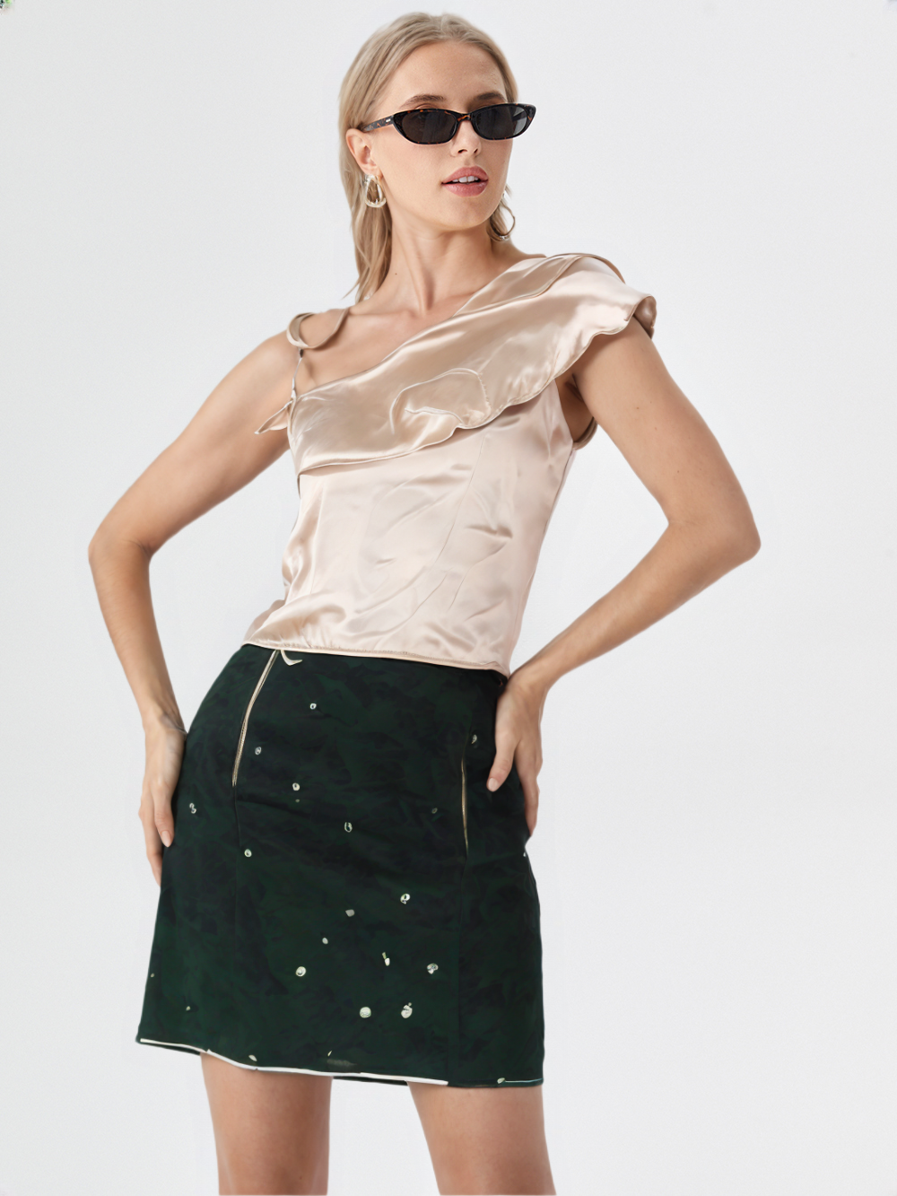 The Women's Satin Glow One Shoulder Top offers a sleek, contemporary silhouette with its asymmetrical neckline. Made from smooth satin fabric, it delivers a subtle sheen that enhances any outfit with a touch of sophistication. Designed to drape elegantly, this top is perfect for evening events or stylish daywear, combining comfort with refined style.
