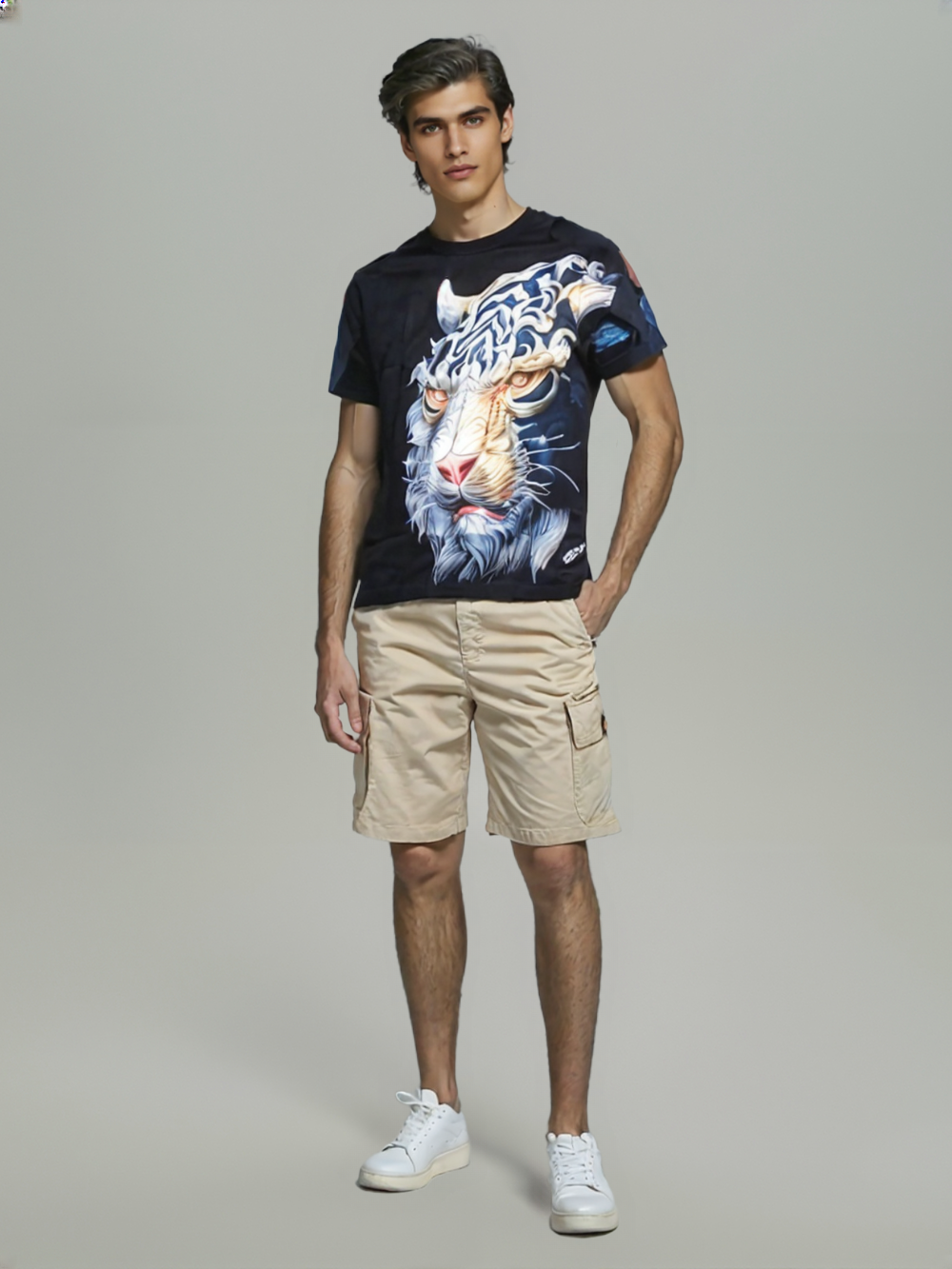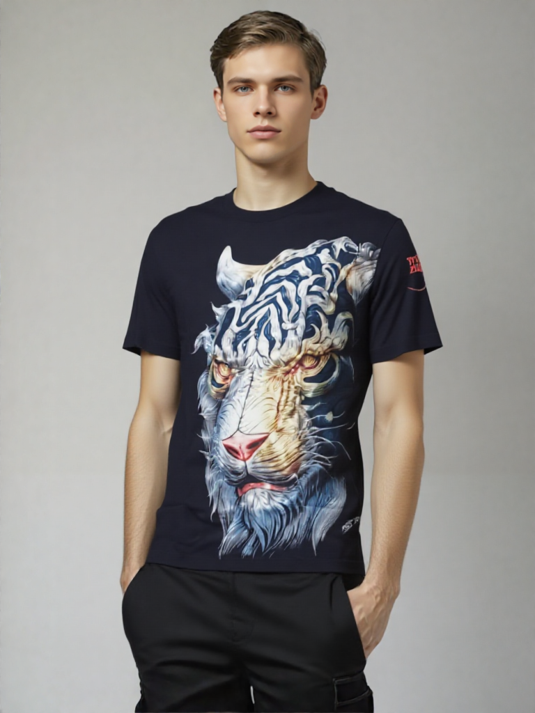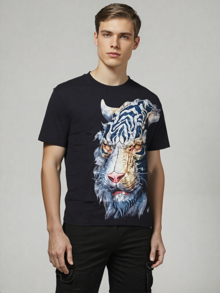 The Men Mythic Tiger Roar T-Shirt features a bold abstract beast graphic that captures the fierce energy of the tiger. Crafted for both style and comfort, this shirt offers a unique design that stands out while providing a soft, durable fit. Perfect for those who want to express strength and individuality through their wardrobe, it suits casual outings and statement-making looks alike.