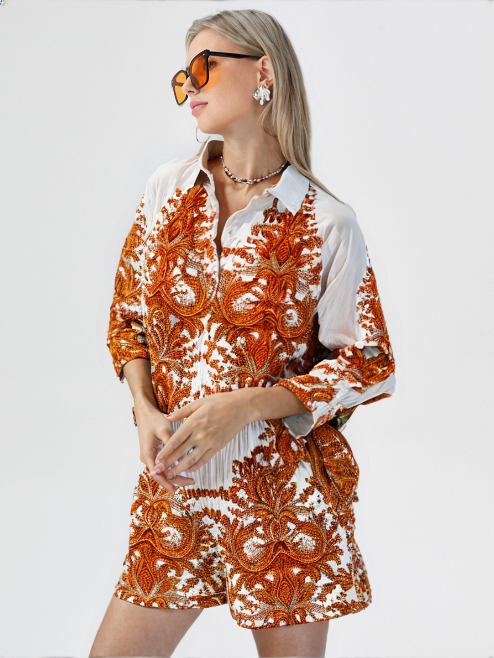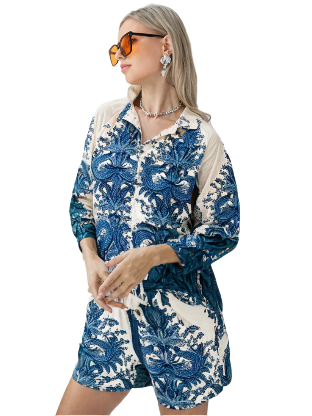 This Women's Co-Ord Set features a stylish and versatile two-piece design, including a button-up shirt and matching shorts. Perfect for any occasion, this set offers both comfort and fashion for the modern woman. Elevate your wardrobe with this must-have co-ord set.