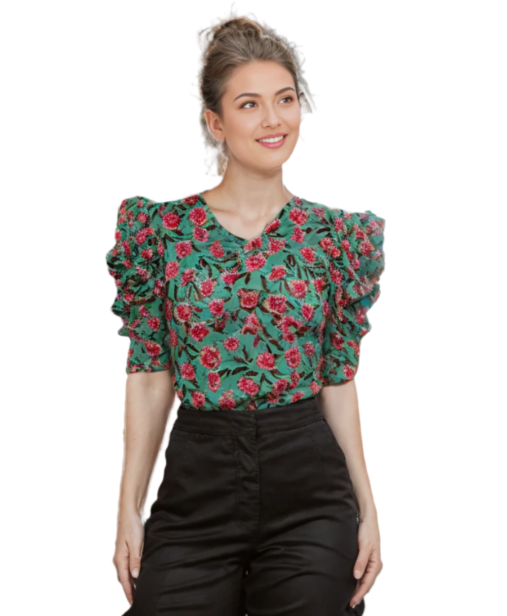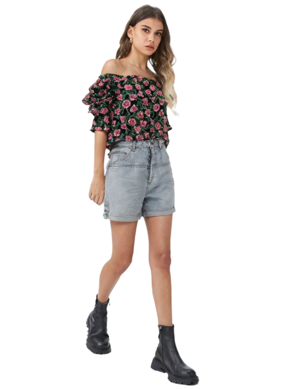 This printed top offers a chic, off-the-shoulder design that is perfect for any stylish woman. The eye-catching print adds a trendy touch to any outfit. With a flattering fit and comfortable fabric, this top is both fashionable and comfortable. Show off your trendsetting style with this must-have piece.
