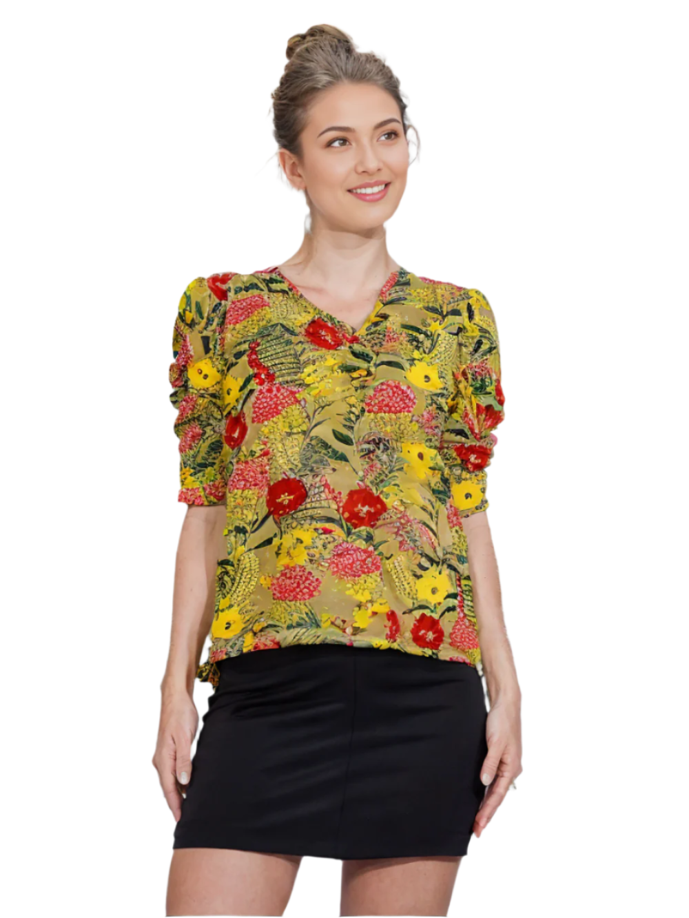 This women's top is designed with printed patterns to add a touch of style to any outfit. Made with high-quality materials, it offers comfort and durability for all-day wear. Perfect for casual or dressy occasions, this versatile top will elevate any wardrobe.