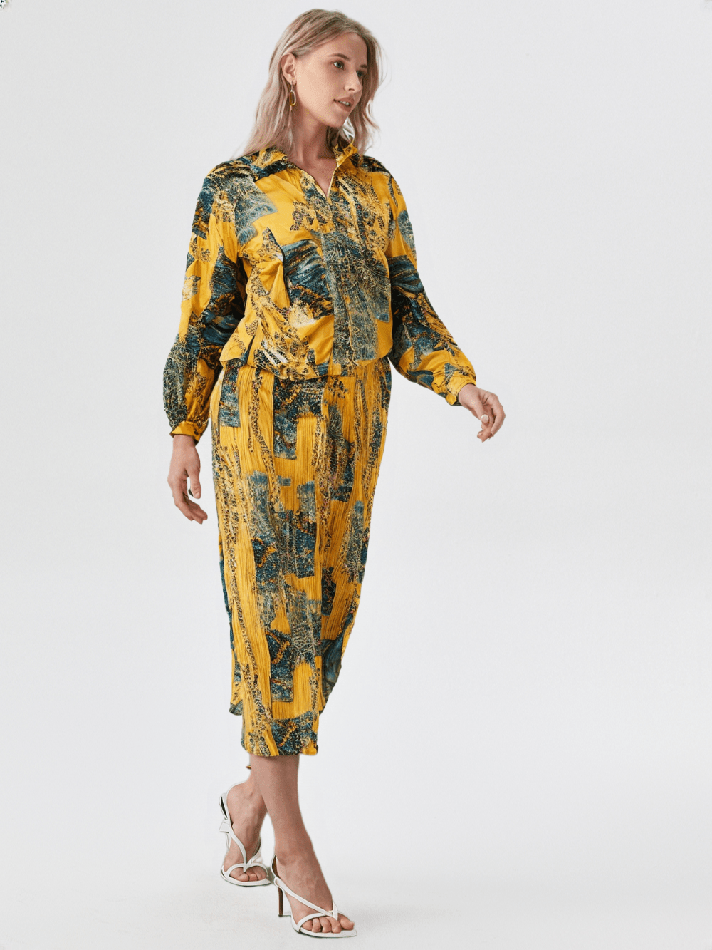 This Women's Co-Ord set features a stylish and unique printed design, perfect for any fashion-forward woman. The set includes both a top and bottom, making it easy to create a coordinated and fashionable look. Stay on-trend and make a statement with this must-have set.