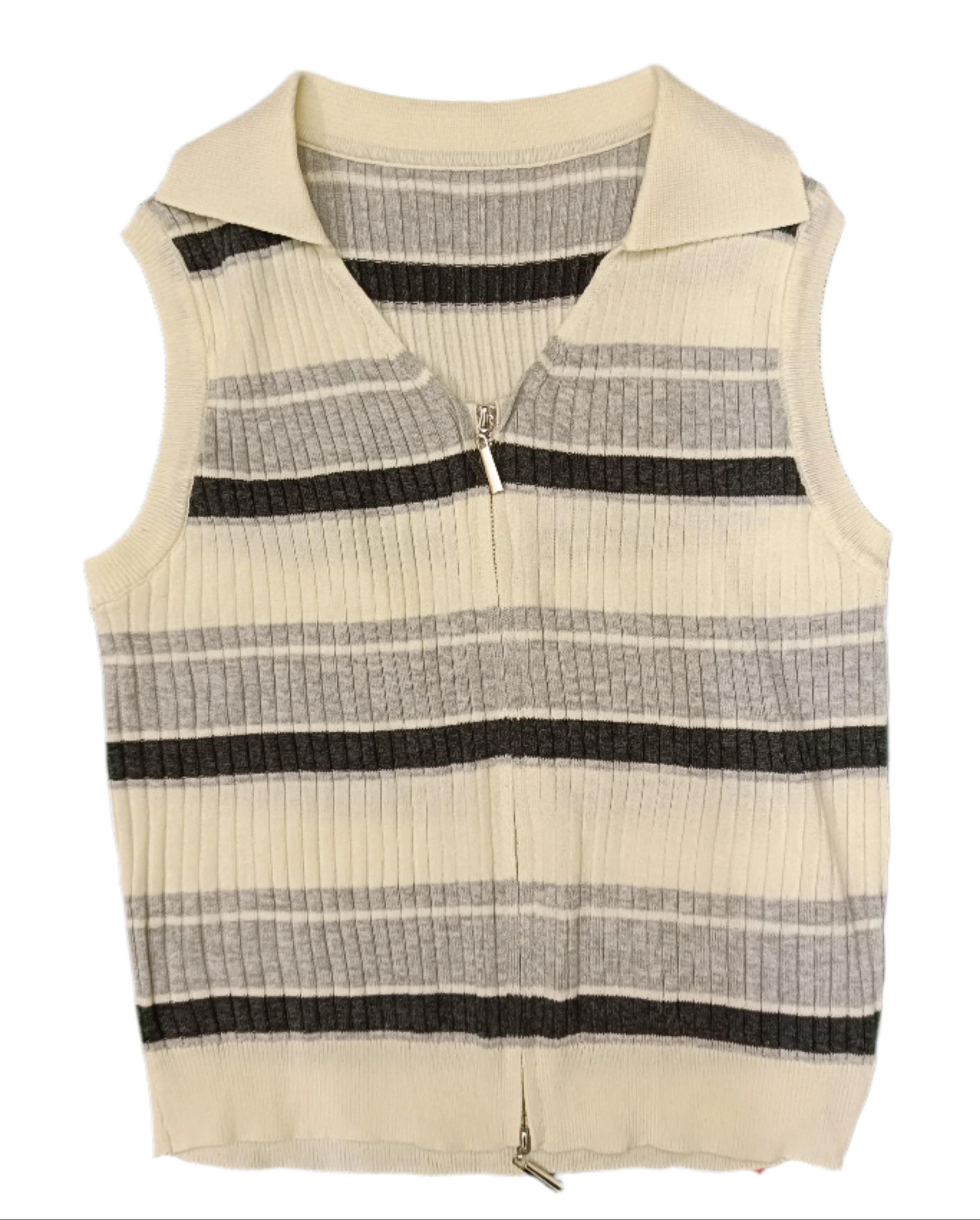 Expertly crafted from lightweight, breathable knitted fabric, this women's top offers a comfortable and stylish addition to any wardrobe. The sleeveless design is perfect for warmer weather, while the subtle striped pattern adds a touch of sophistication. A must-have for any fashion-forward woman.
