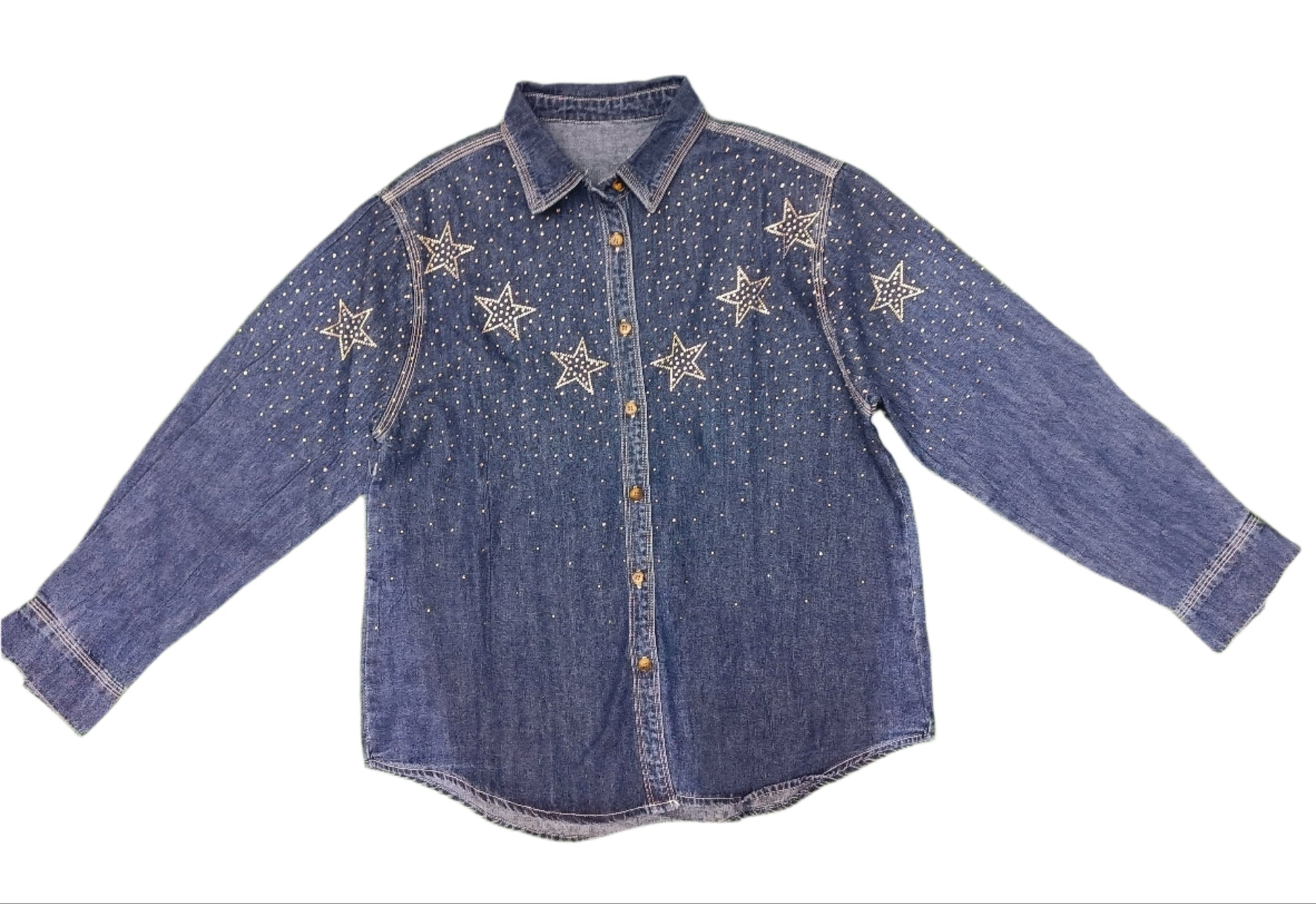 Effortlessly elevate your wardrobe with our Women's Denim Shirt. Crafted with high-quality denim and adorned with a stunning sequined design, this shirt offers a sophisticated yet playful touch to any outfit. Make a statement without sacrificing comfort with our stylish and versatile shirt.