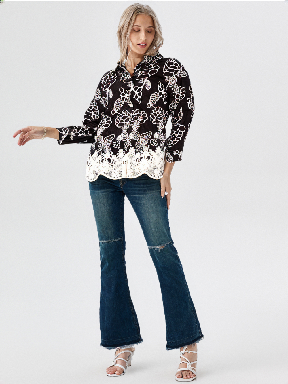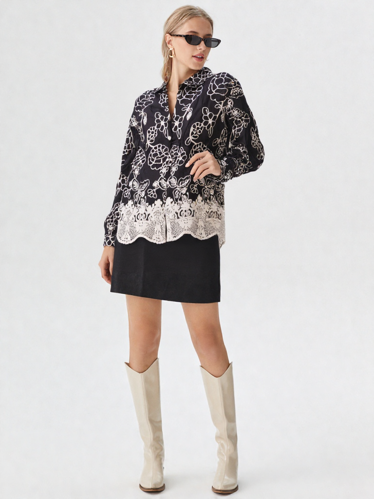 This women's shirt features a beautiful floral print, perfect for adding a touch of femininity to any outfit. Made from high-quality materials, it offers both style and comfort. Elevate your wardrobe with this must-have piece.