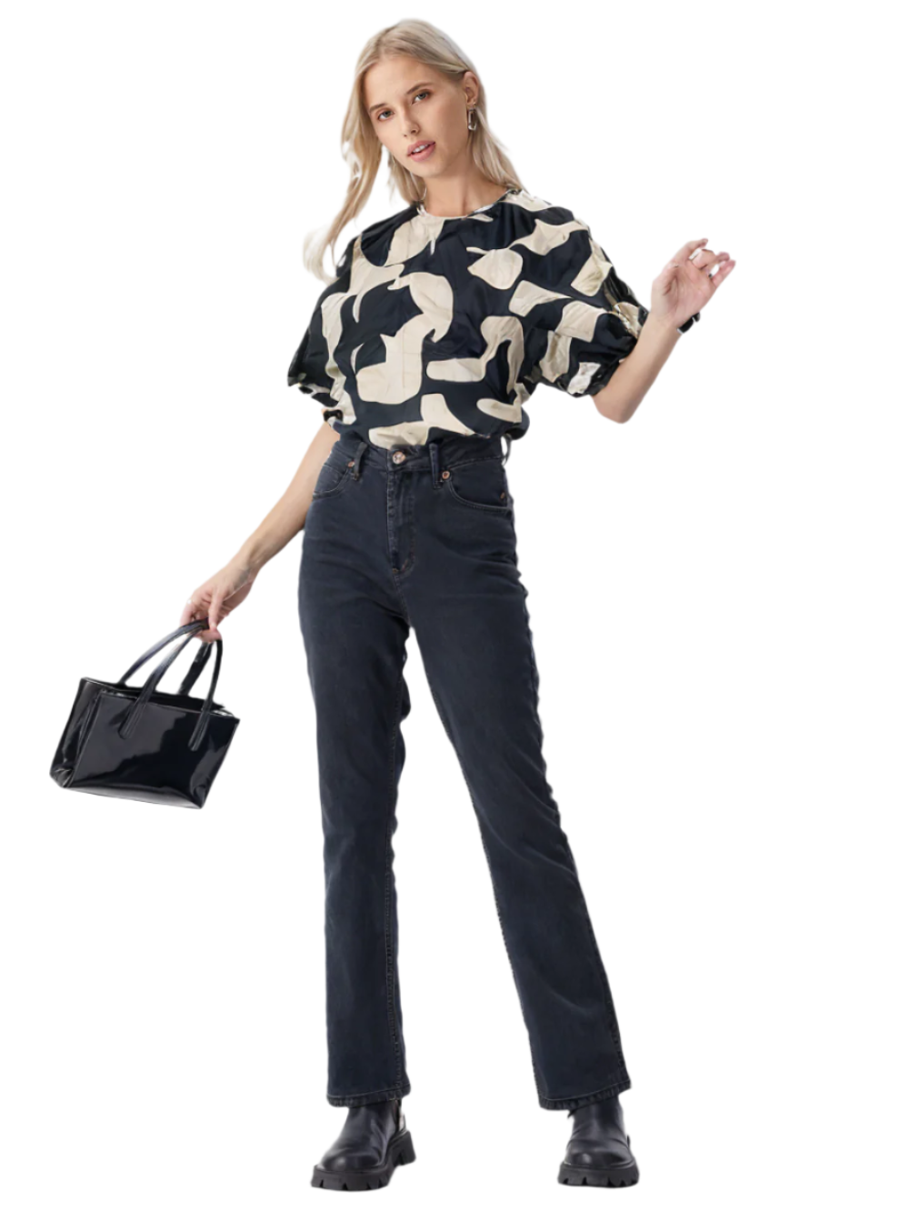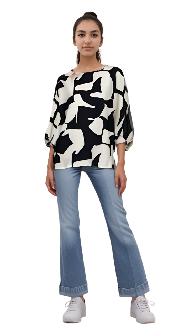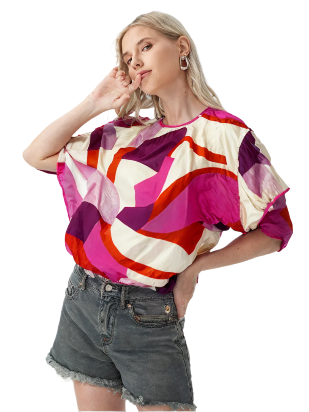 This women's top boasts an eye-catching printed design, perfect for adding a touch of style to any outfit. Made with high quality materials, it offers both comfort and durability. Upgrade your wardrobe with this top's unique and fashionable pattern.