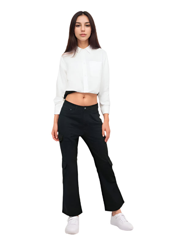 Effortlessly chic and versatile, our Women’s Cargo pants in denim black offer a straight fit with a cargo design. Made with high-quality denim, these pants provide both style and functionality for any occasion. Add a touch of edginess to your wardrobe with these must-have cargos.