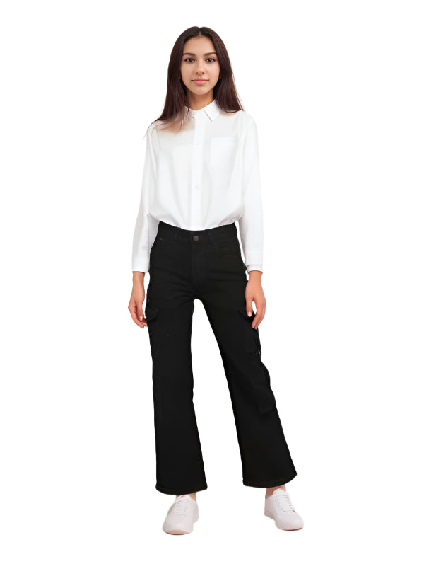 Expertly designed for the modern woman on the go, our Women's Cargo pants offer both style and functionality. Crafted from high-quality black denim, these pants feature a straight fit and cargo pockets for added storage. Perfect for any occasion, these pants are a versatile addition to any wardrobe.