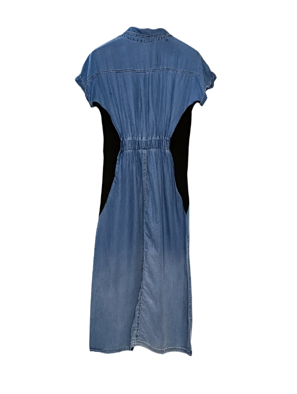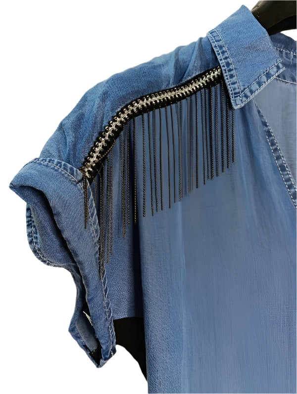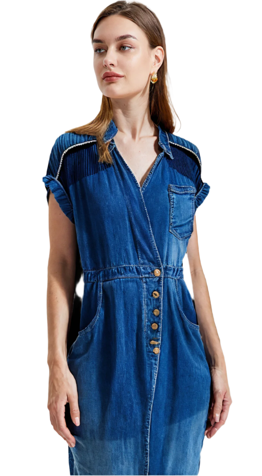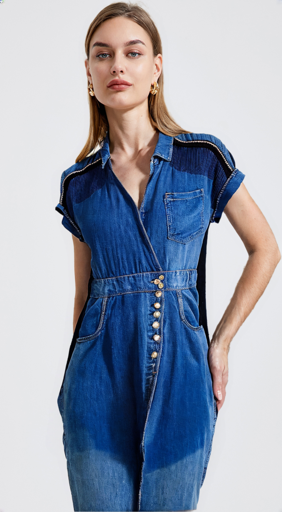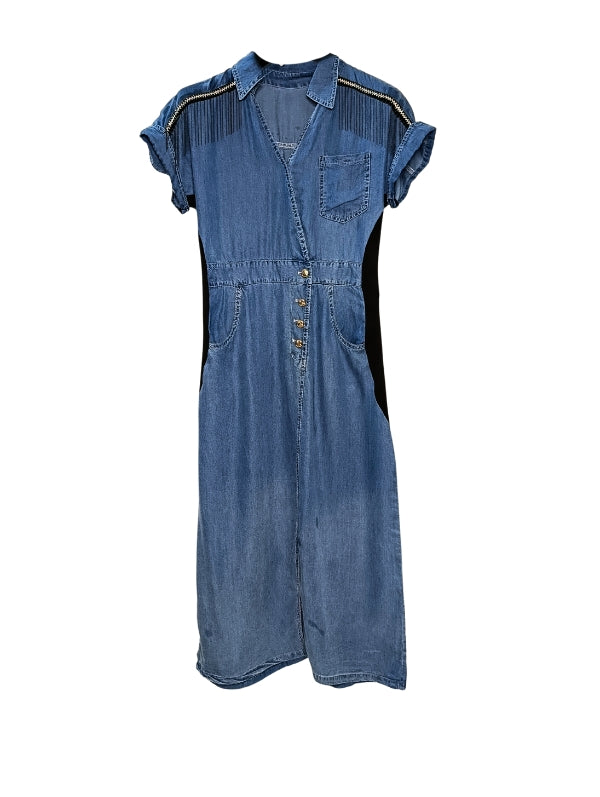 This women's mini dress is made from denim, providing a durable and stylish option for any occasion. With its lightweight and comfortable fabric, this dress is perfect for everyday wear or dressing up for a special event. The classic denim design is versatile and timeless, making it a must-have addition to any wardrobe.