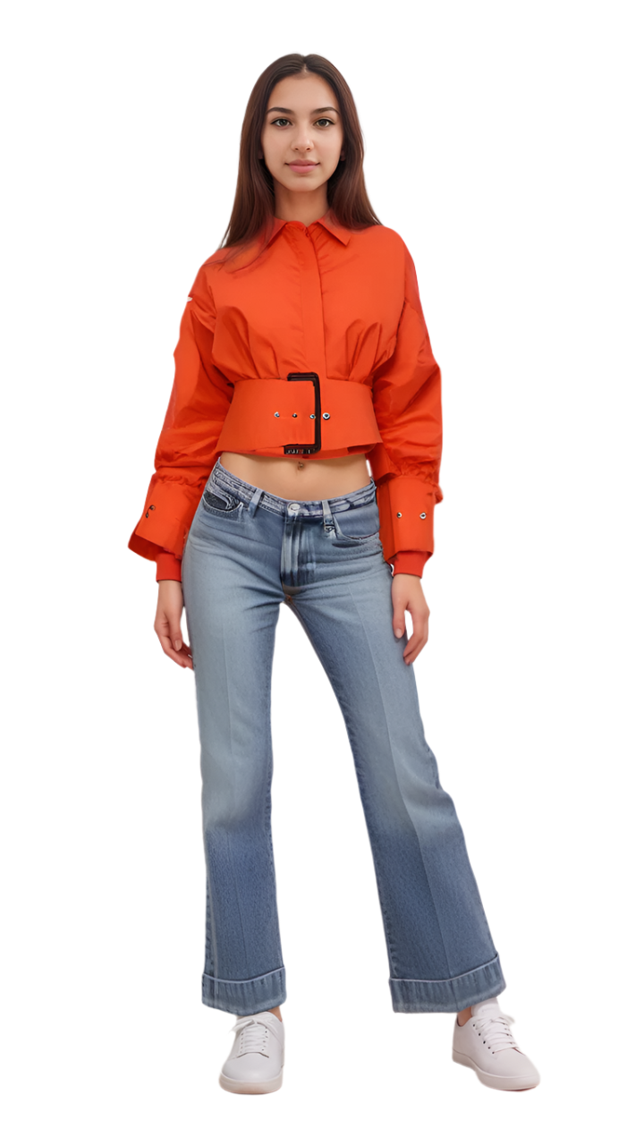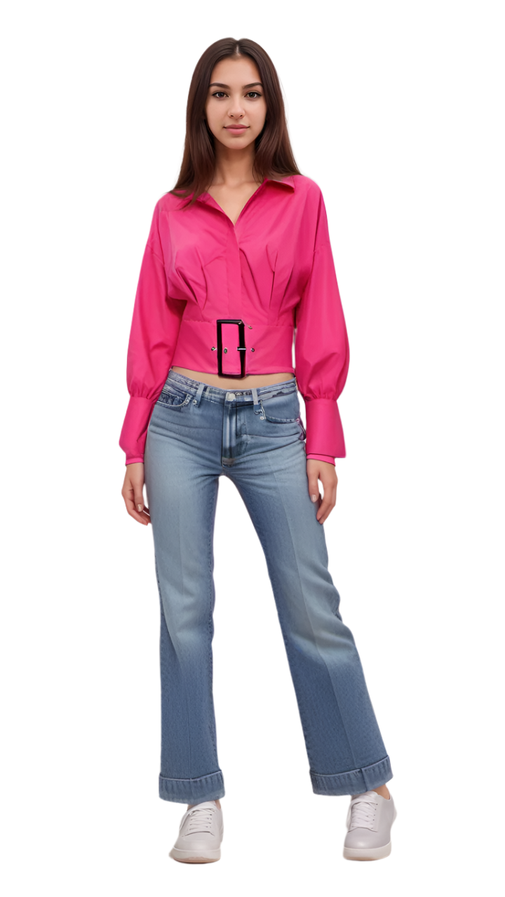 Mask - solid color full sleeves with belt shirt , cotton fabric