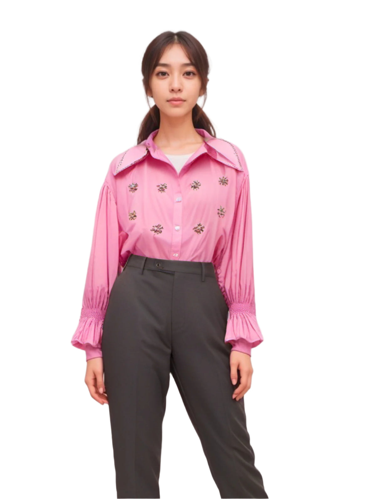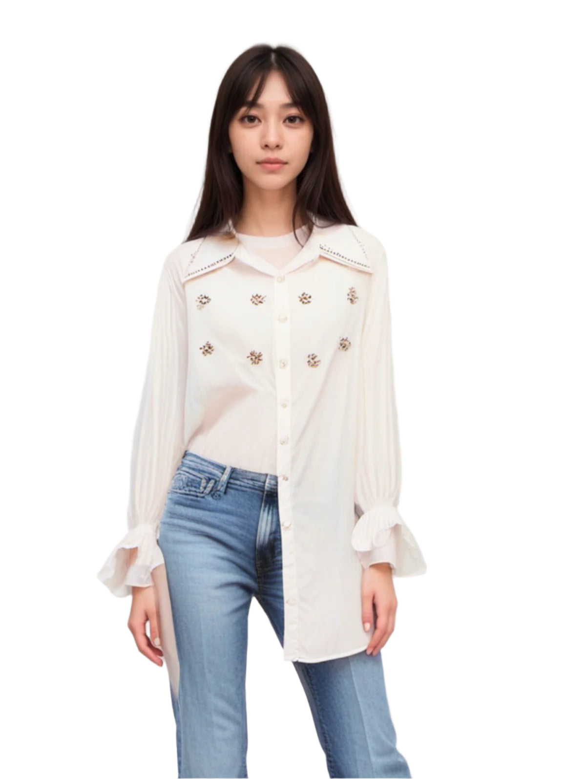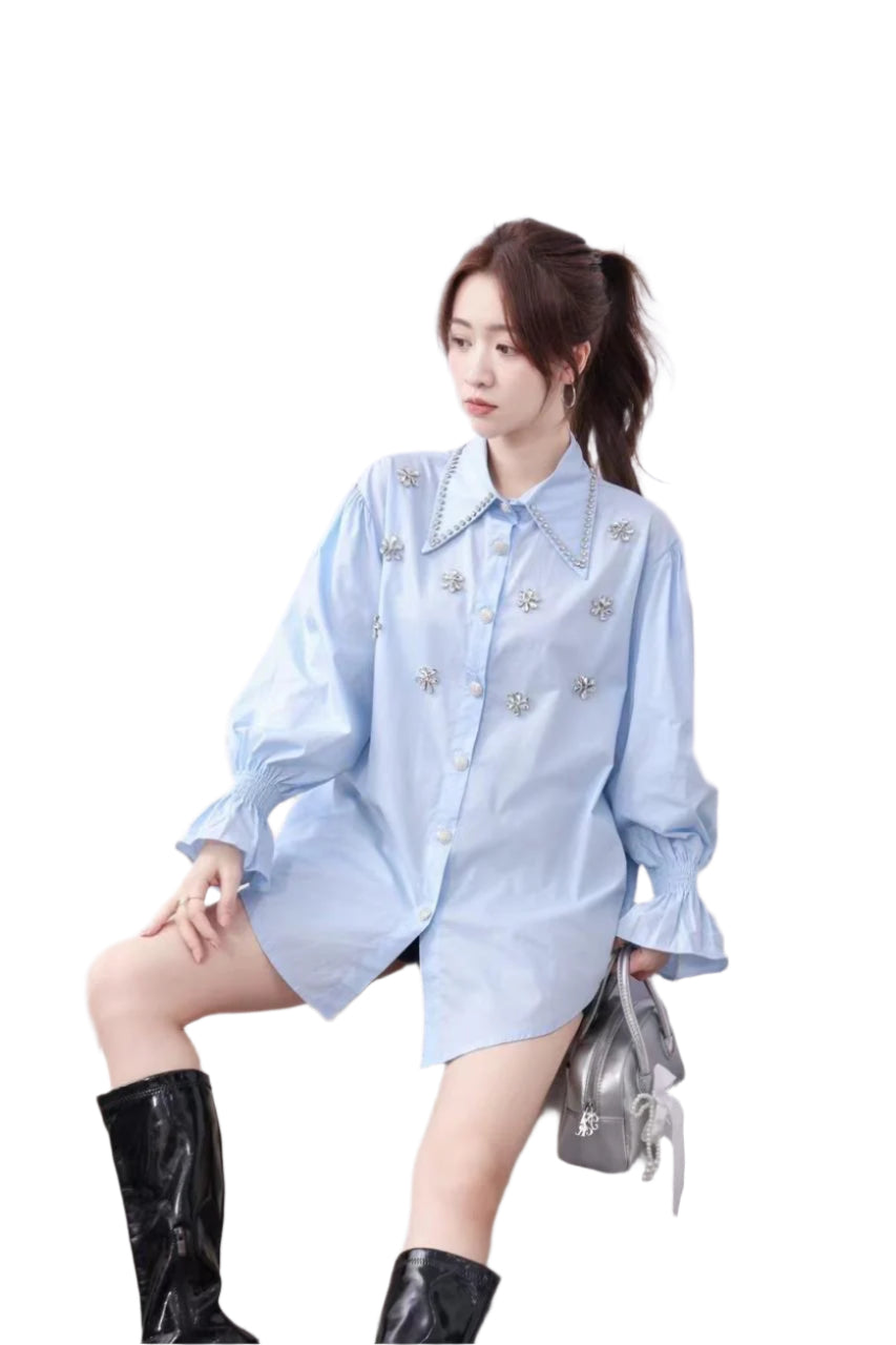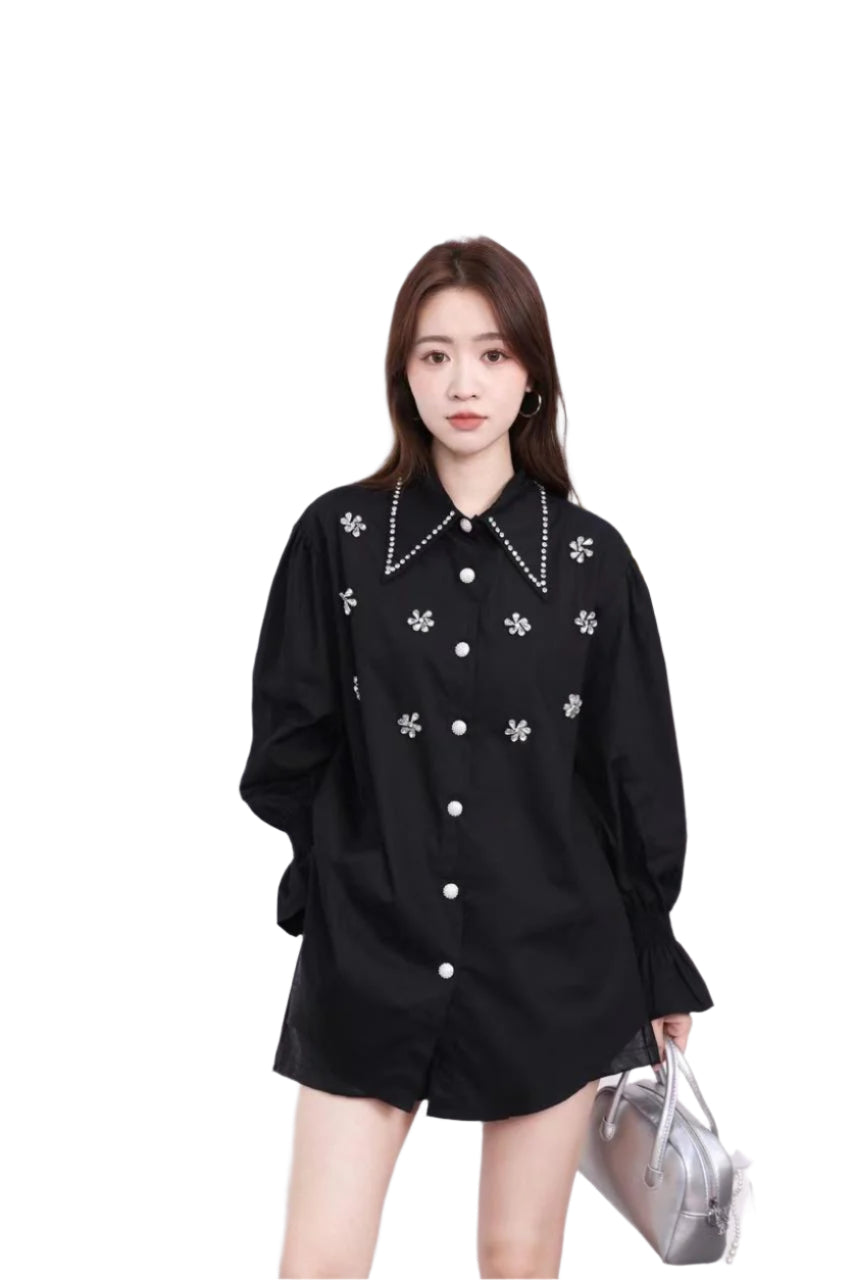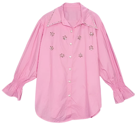 This women's shirt is made from a high-quality cotton blend fabric, ensuring comfort and durability. The sequin design adds a touch of elegance and style. Experience the perfect combination of comfort and fashion with this must-have shirt.