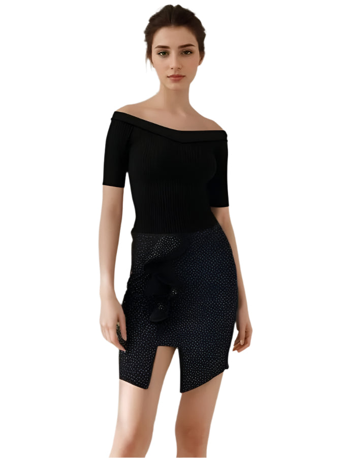 Introducing our Sequined Knee-Length Skirt, where elegance meets comfort. Crafted from premium cotton lycra fabric, it offers both stretch and breathability for all-day wear. Adorned with intricate sequined detailing, this skirt adds a touch of glamour to any occasion. Embrace effortless sophistication with this dazzling piece.