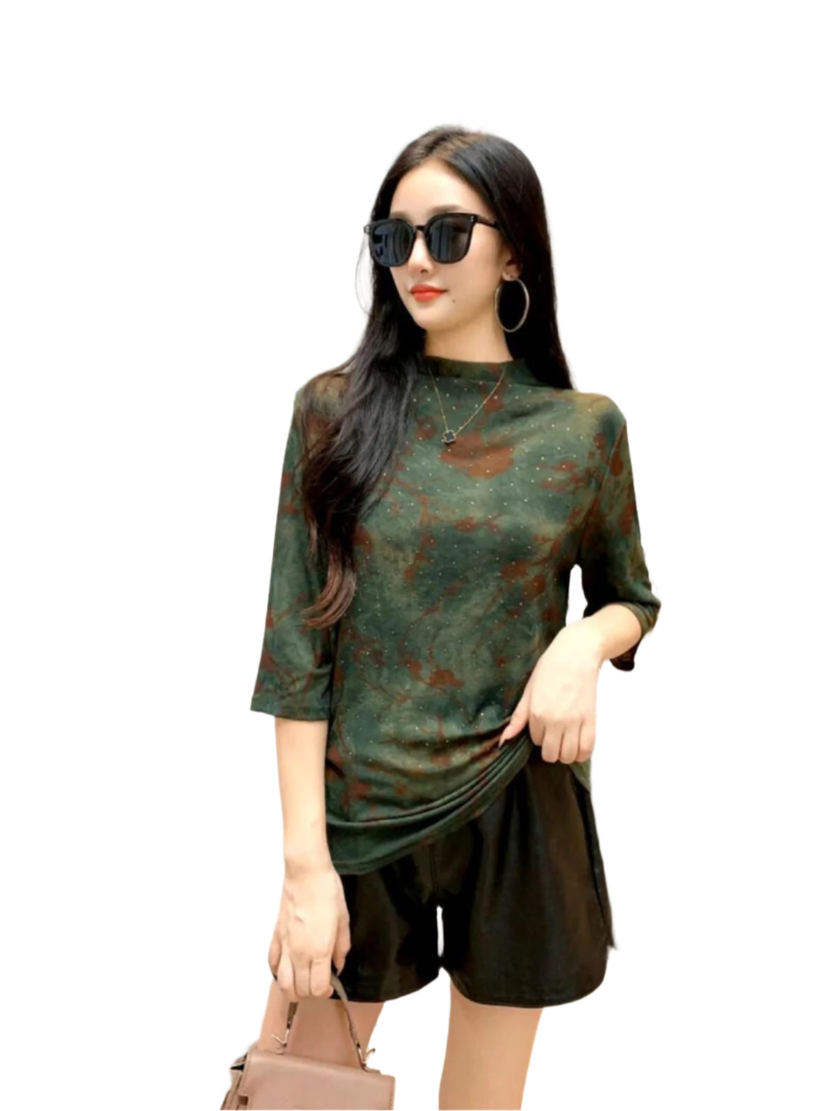 This women's top features a unique printed design and is made with PowerNet fabric, providing comfortable support and a flattering fit. With this top, you'll feel confident and stylish in any setting.