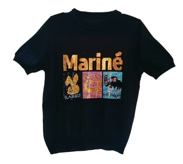 This women's top boasts a knitted fabric with a stunning sequin design, creating a chic and sophisticated look. The soft and comfortable material ensures all-day wearability, while the eye-catching sequins add a touch of glamour. Elevate any outfit with this versatile and stylish top.